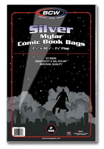 50 Stück extrastarke Silver Size Comic Bags aus hochleistungsfähigem Mylar.