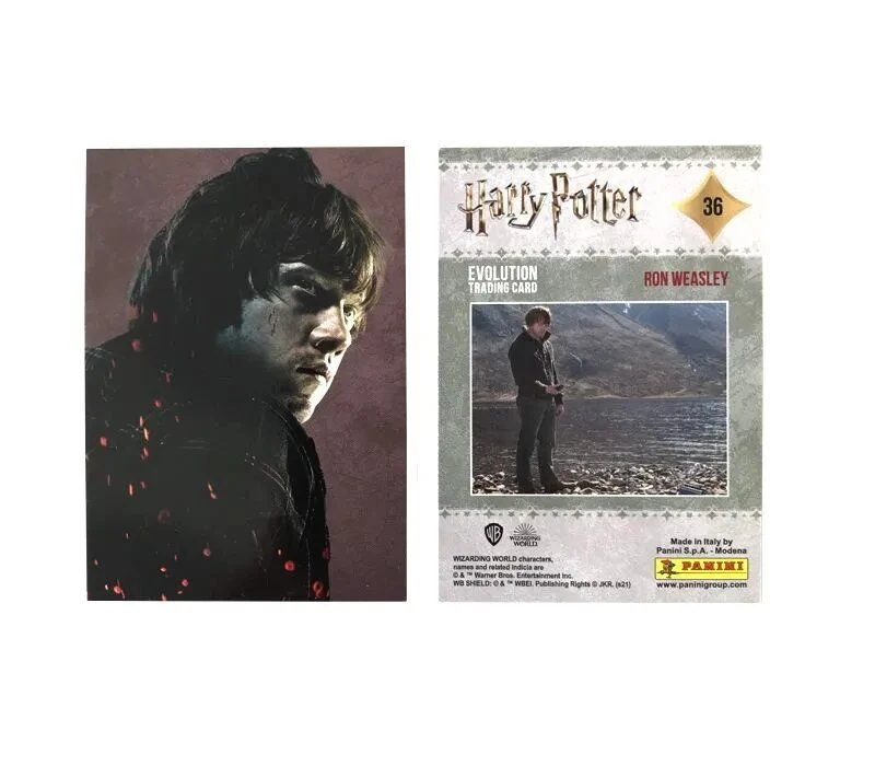 Die ganze Welt von Harry Potter als Trading Card Serie Evolution von Panini. Voller Einstieg in die Panini Harry Potter Evolution Trading Cards Kollektion! In der ersten reinen Trading Cards Kollektion können Potterheads die Entwicklung ihrer Lieblingscharaktere aus den Harry Potter Filmen nachverfolgen. Es erwarten euch insgesamt 300 Base Cards und insgesamt 750 Parallel Cards in 3 verschiedenen Versionen in dieser Serie. Mit dabei Gold Parallel, Silver und Fragmented Reality Parallel Cards.