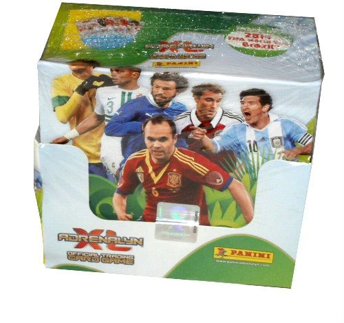Booster Display mit dem Panini Adrenalyn XL Tradingcardgame Road to World Cup 2014 zur kommenden Fußball Weltmeisterschaft in Brasilien.
