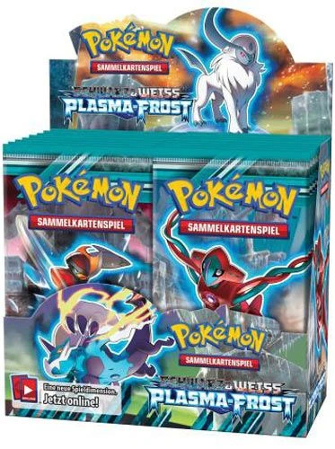 Deutsches Booster-Display mit Sammelkarten der neunten Pokemon Schwarz & Weiss Serie: Plasma-Frost.