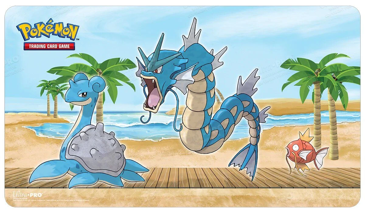 Von Ultra PRO kommt diese Spielmatte im Pokémon-Design. Surft mit dem Zubehör der Pokemon Seaside-Serie auf! Die Playmats für Pokémon von Ultra PRO verfügen über lebendige, vollfarbige Grafiken. Hergestellt mit einer weichen Stoffoberfläche, um Schäden an Karten während des Spiels zu vermeiden, und einer rutschfesten Gummirückseite, um zu verhindern, dass sich die Spielmatte während des Gebrauchs verschiebt, verbessern Spielmatten das Spielerlebnis. Mit Abmessungen von ca. 24 Zoll x 13,5 Zoll eignet sich eine Spielmatte auch hervorragend als übergroßes Mauspad für Zuhause oder das Büro.