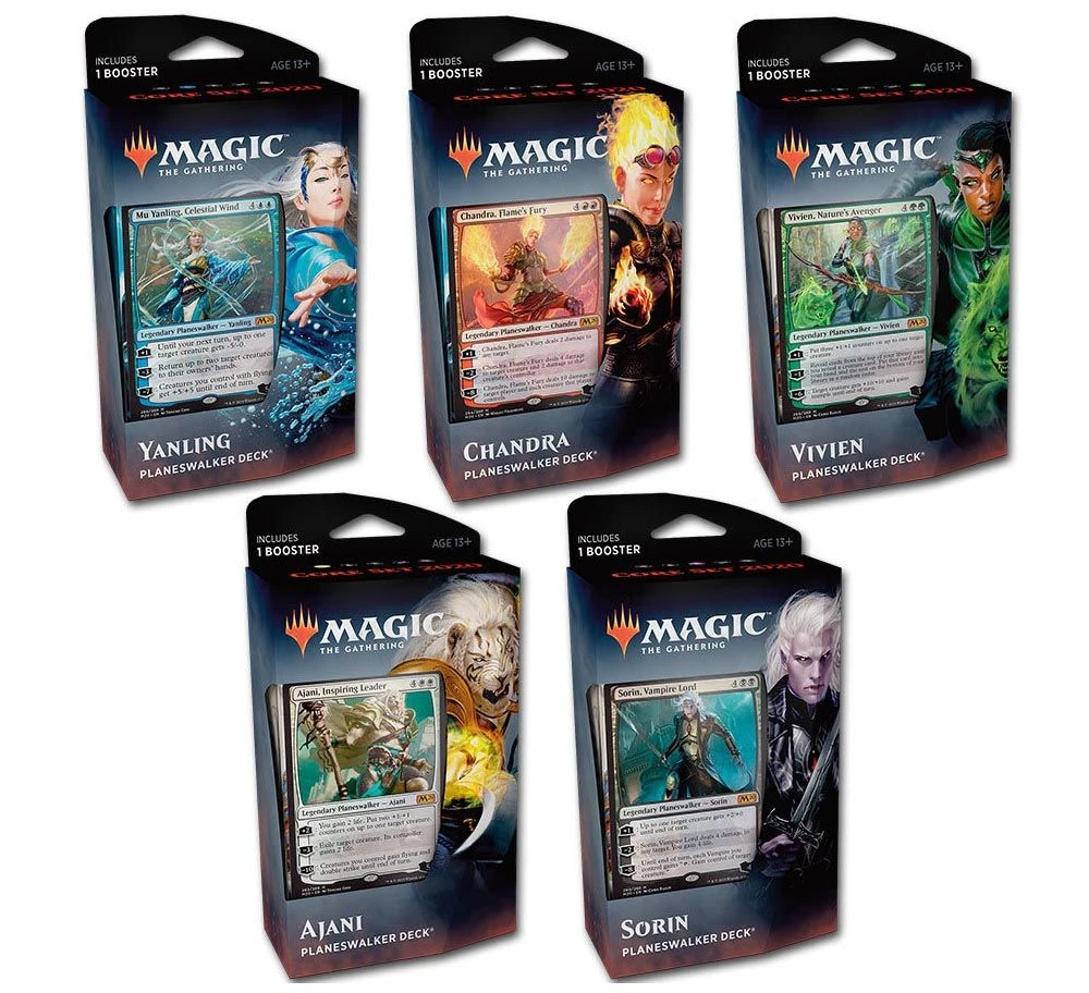 5er Set mit allen erhältlichen Planeswalker-Decks zur Magic Edition Core Set 2020 in Englisch: Yanling, Chandra, Vivien, Ajani und Sorin.