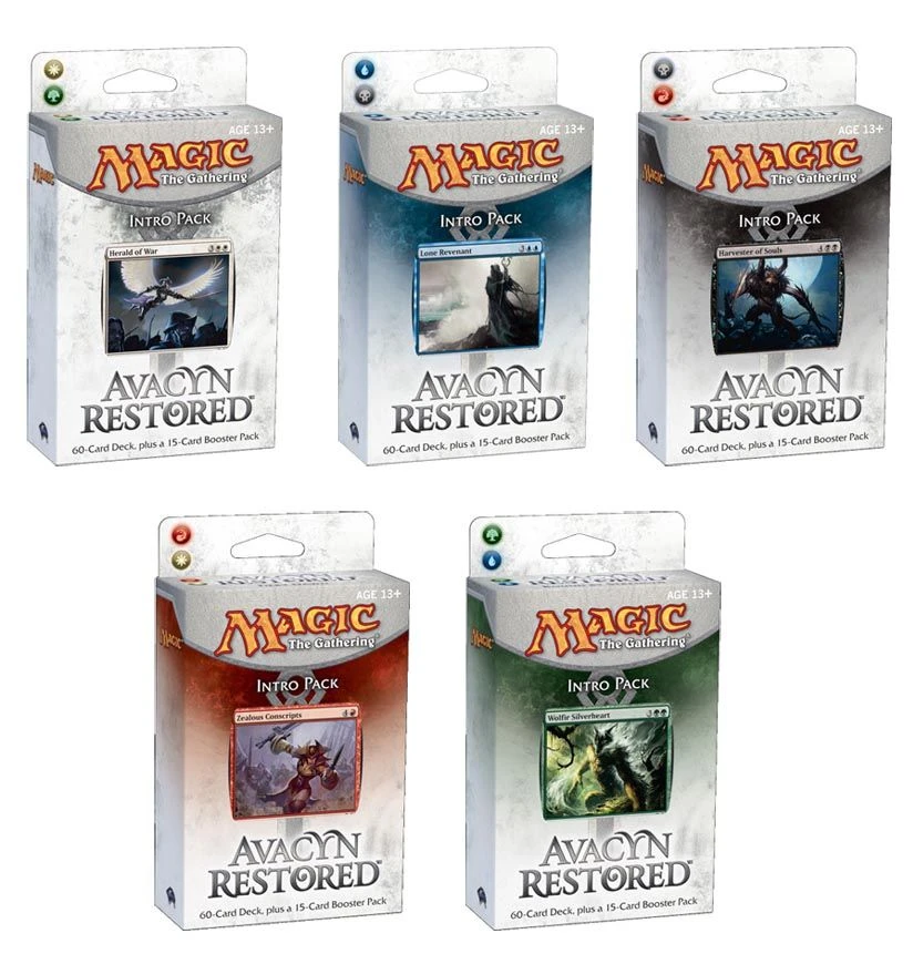 5er Set mit allen verfügbaren Intro Packs der Magic Serie Avacyn Restored in Englisch.